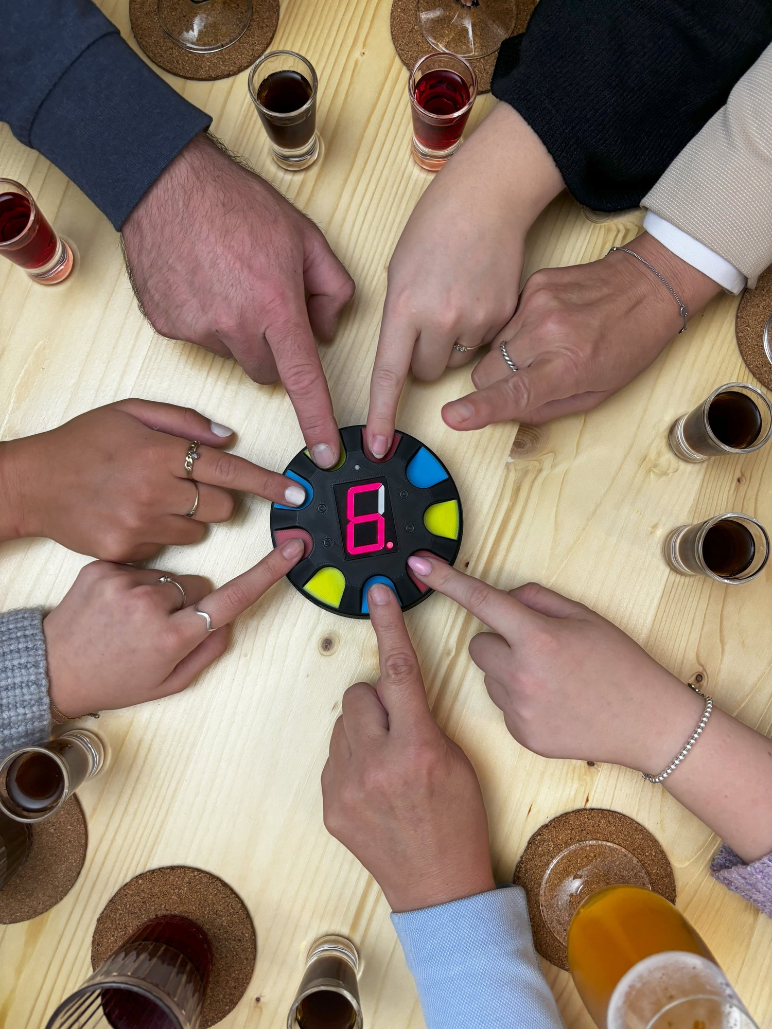 Lass die Finger fliegen und erlebe, wie der Spaß von Runde zu Runde steigt. Flotterfinger ist super flexibel: Egal, ob ihr zu zweit oder mit bis zu neun Leuten spielt – einfach Finger auflegen und los geht’s!
